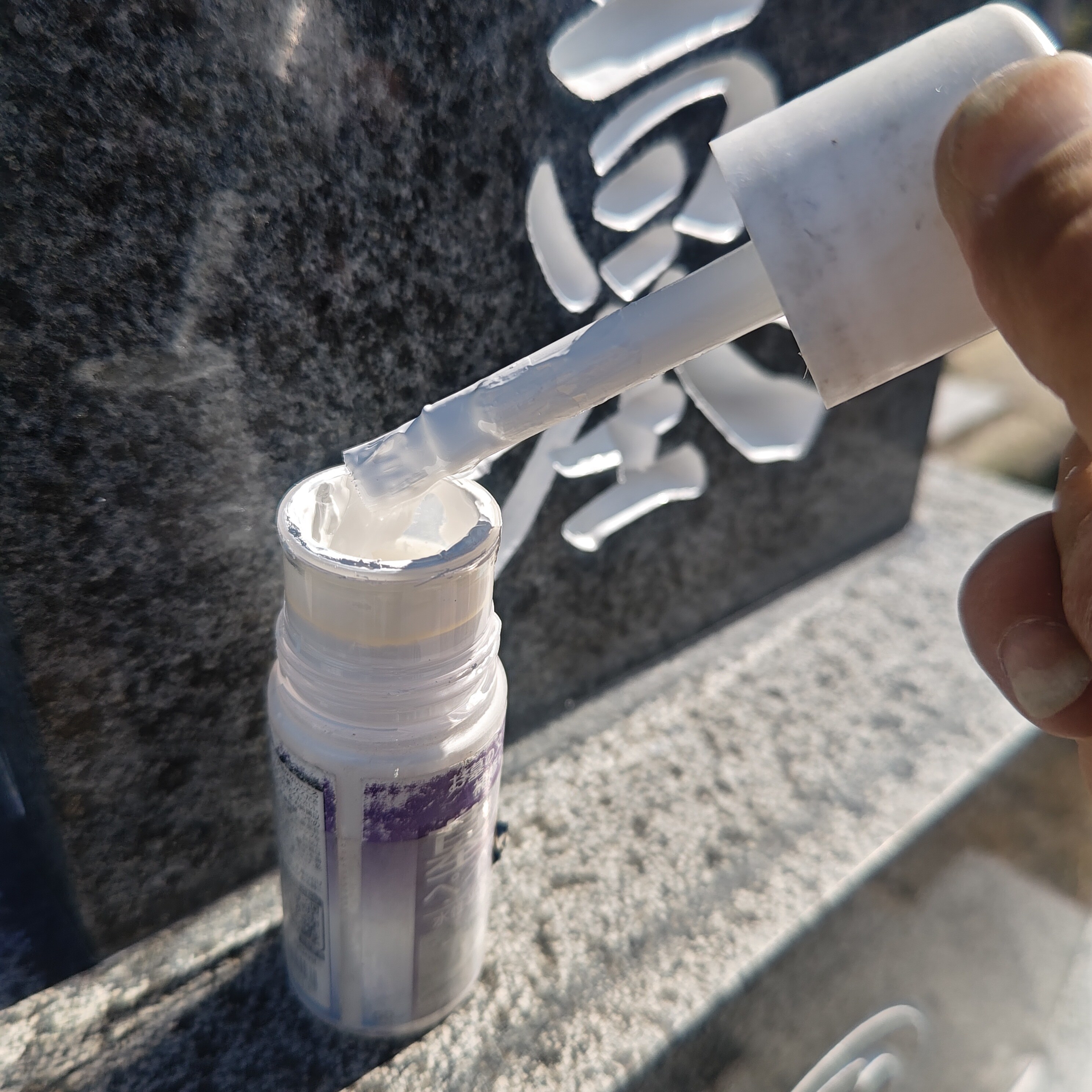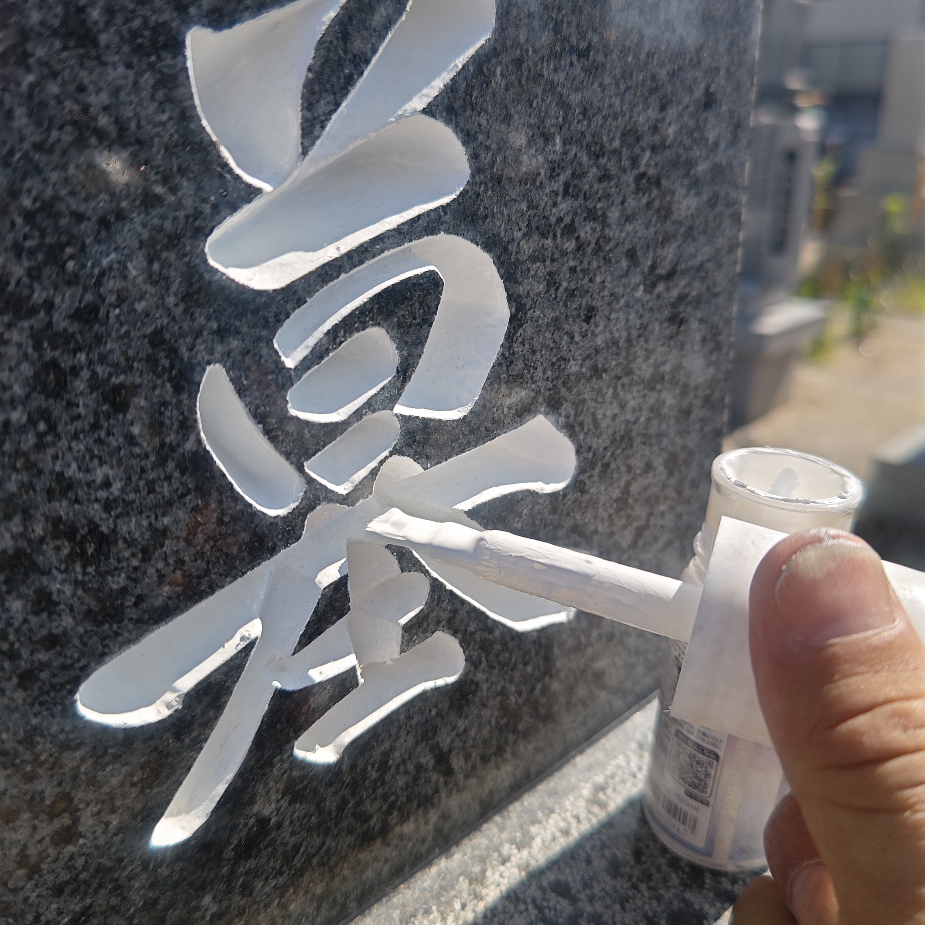 ※ツルツルに磨いてあるお墓の文字を塗る場合は、はみ出ても良いので思いっきり塗りましょう