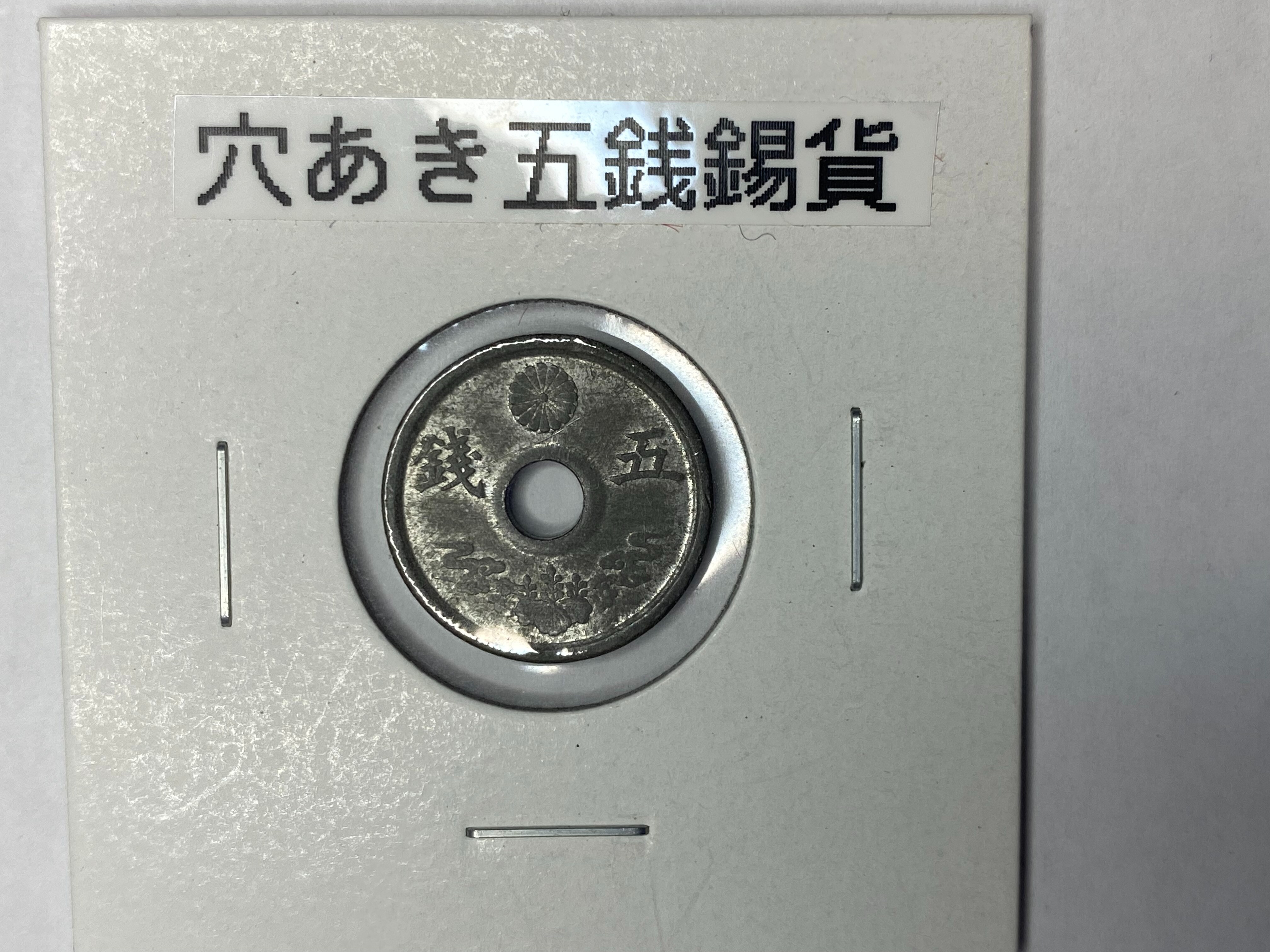 穴あき5銭錫貨(品位:錫930/亜鉛70) 直径17mm