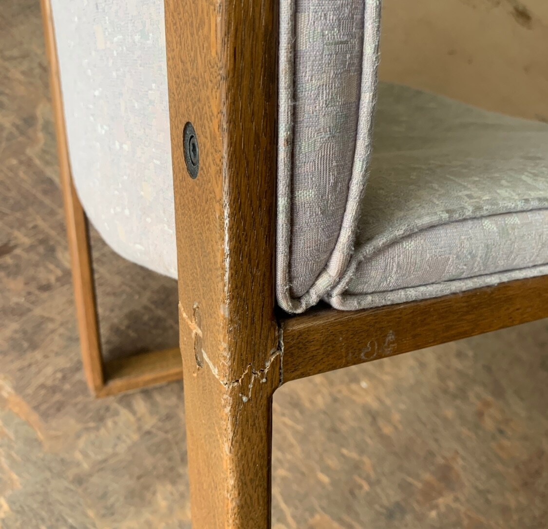 ご家族で長年お使いの椅子は、ウレタンが消耗していますので、背も座もウレタン交換をする事に致しました⬇︎