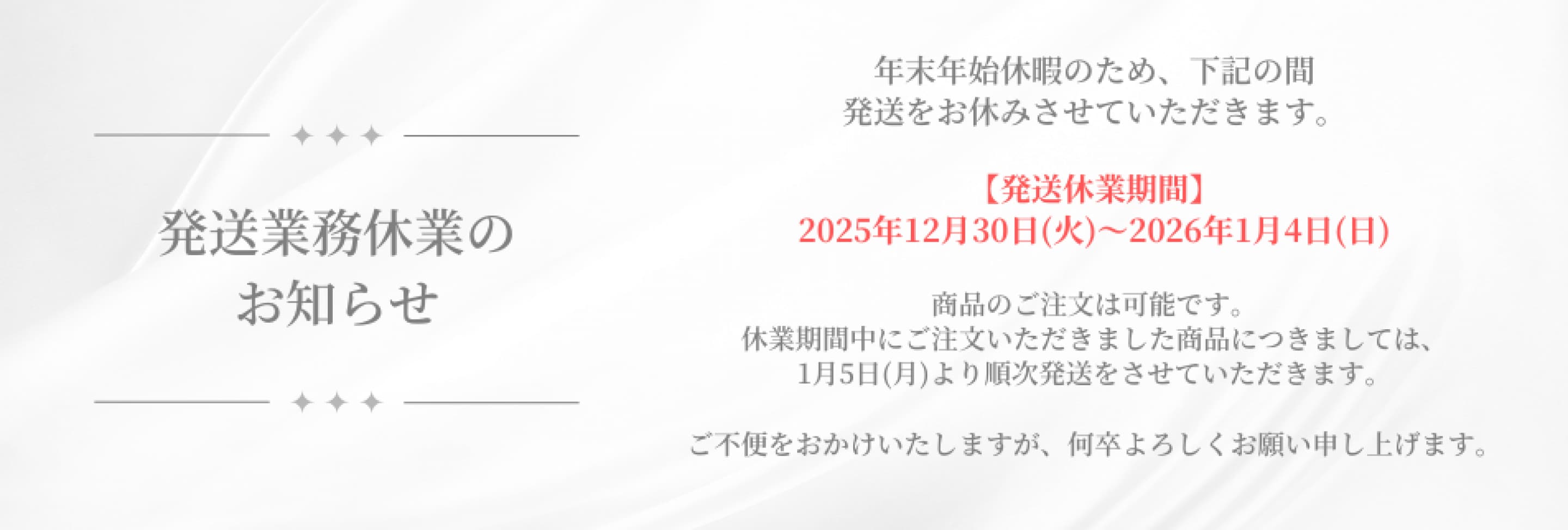 発送業務休業のお知らせ