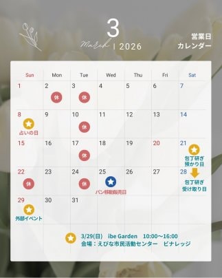 3月定休日&イベントのお知らせ