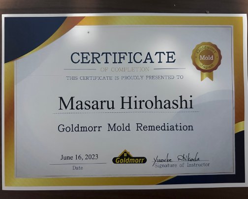 ゴールドモア JAPAN の審査、講習のプロセスを経て、ゴールドモアテクニシャンのライセンスを取得致しました。