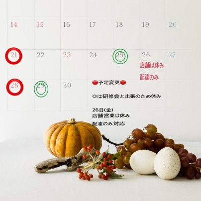 10月の営業のお知らせ