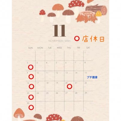 11月の営業についてお知らせします。