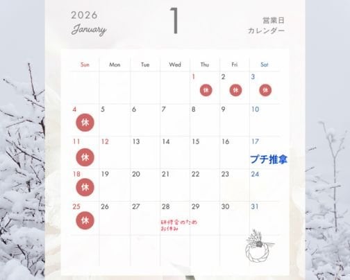 2026年1月の営業日についてのご案内です。