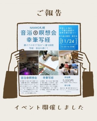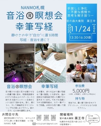 24日は宮の森の薬王寺で音浴と写経のイベントが開催されます!自分の内側と向き合う静かな時間を過ごしませんか? …続きを読む