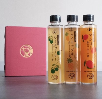 沖縄県・株式会社マキ屋フーズさんが手がける「飲むフルーツ酢3本セット(シークワーサー・パイナップル・マンゴー)」。