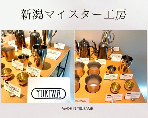 2Fに創業大正元年のステンレス専門メーカー三宝産業さんの「YUKIWA」がキラリ✨と輝いてディスプレイされていました。