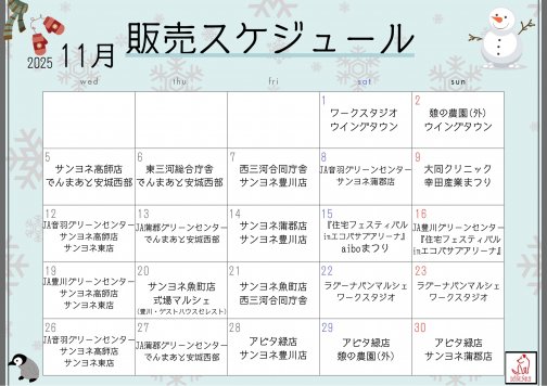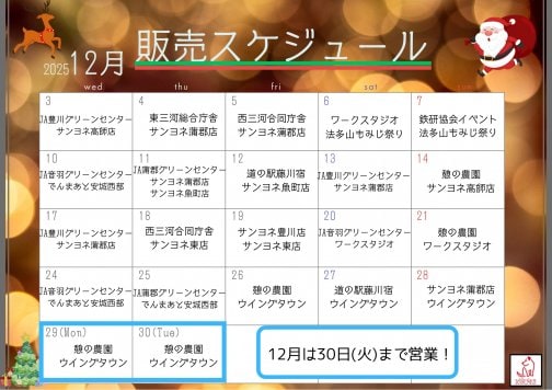現在幸田店は11月29日と12月4日、6日、12日、21日