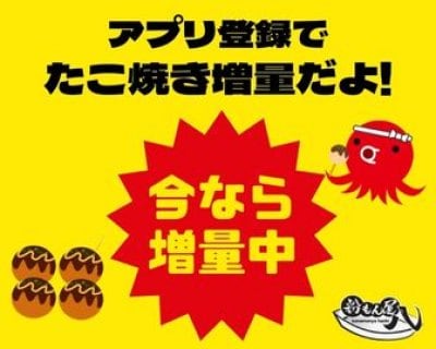 ダウンロードいただいたアプリをご提示いただきますと、ご注文にたこ焼き増量プレゼント中です。