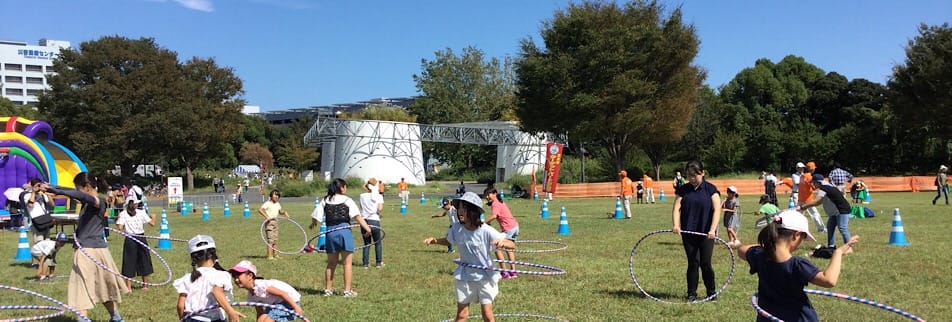 フラフープエクササイズHOOPBOON®︎やキッズフープダンス、リフレッシュエクササイズKAZE®︎などエクササイズプログラムの開発・指導者の育成を主な事業としています。