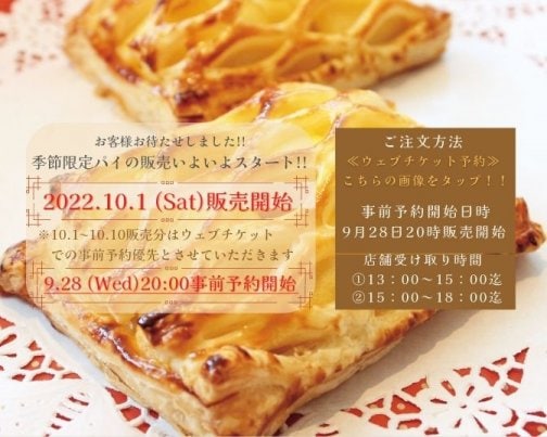 季節限定アップル&ミックスパイ事前予約チケット販売のお知らせ