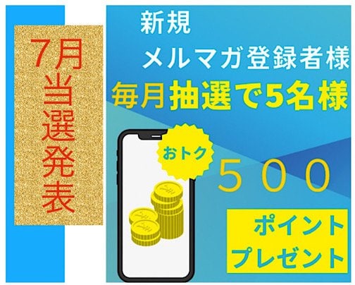 新規登録者様が5名いなかったので7月にメルマガ登録されましたコチラのお2人に500ポイントプレゼントさせていただきます。