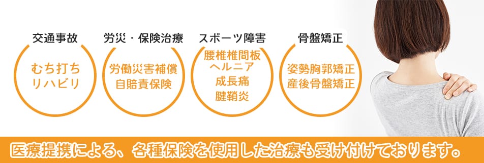 交通事故治療、けが、痛みのことなら是非ご相談ください。