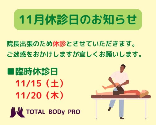 【11月休診日のお知らせ!】愛媛県松山市 TOTAL BODy PRO