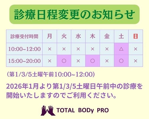 【12月診療日のお知らせ!】愛媛県松山市 TOTAL BODy PRO
