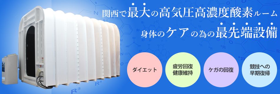 スポーツ時のパフォーマンスUP、日常生活の疲労回復に最適!関西の施術所で最大、唯一!酸素カプセルのルーム版