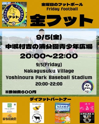 9/5(金)金フット⚽️開催🎊チーム・個人参加も大歓迎😆