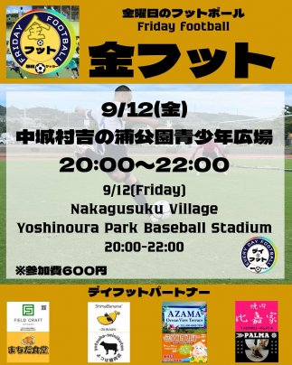 9/12(金)金フット⚽️開催🎊チーム・個人参加も大歓迎😆