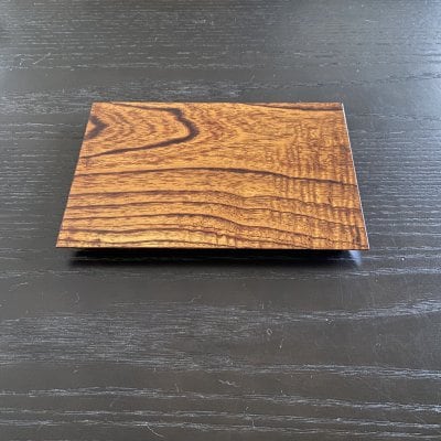 第1弾は那覇市松山にある高級鮨店「鮨一品かわじ」の拭き漆角皿です。
