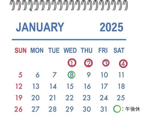 令和8年1月の休診日