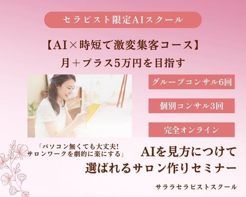 セラピストのための個別コンサル付きAIオンラインセミナー|セラピストスクール|アジアンセラピーサララ