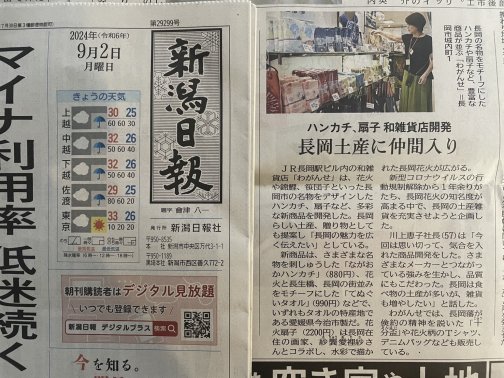 2024年9月2日新潟日報朝刊にて、長岡花火商品を掲載していただきました。