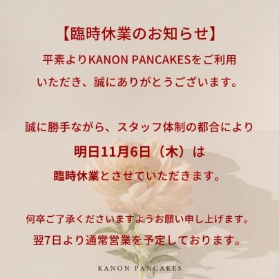 日頃より KANON PANCAKES をご利用いただきありがとうございます。