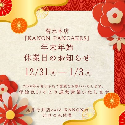 菊水本店『KANON PANCAKES』年末年始のお知らせ