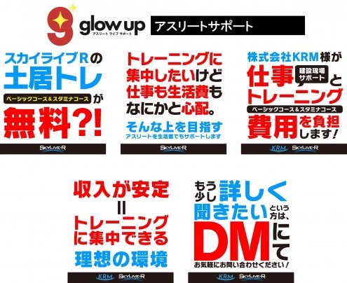 土居トレ無料! アスリートサポート『glow up 』で仕事とトレニングを不安なく両立してチャンピオンに!
