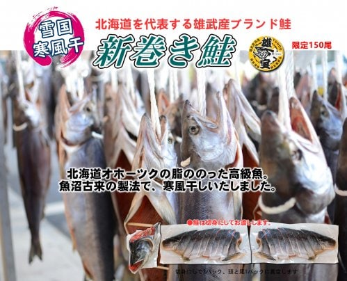 北海道を代表する「雄武産」のブランド鮭を自社で加工しています。魚沼古来の寒風干しで仕上げました。