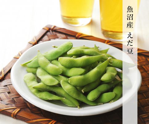 新潟県魚沼産えだ豆です。お米の美味しい地域は雪解け水が多く野菜も美味しく育ちます。また昼夜の寒暖の差が野菜に甘味が増すポイントです。
