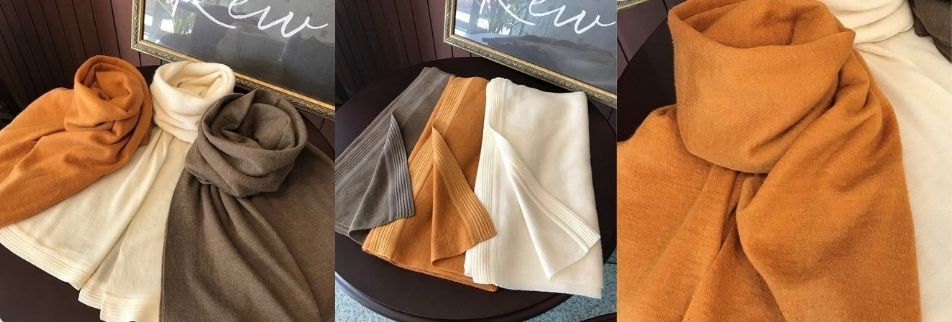 当店ではERI SILK(エリシルク)やアルパカ・ブルーフォックスなどのニット製品や小物を取り扱っております。