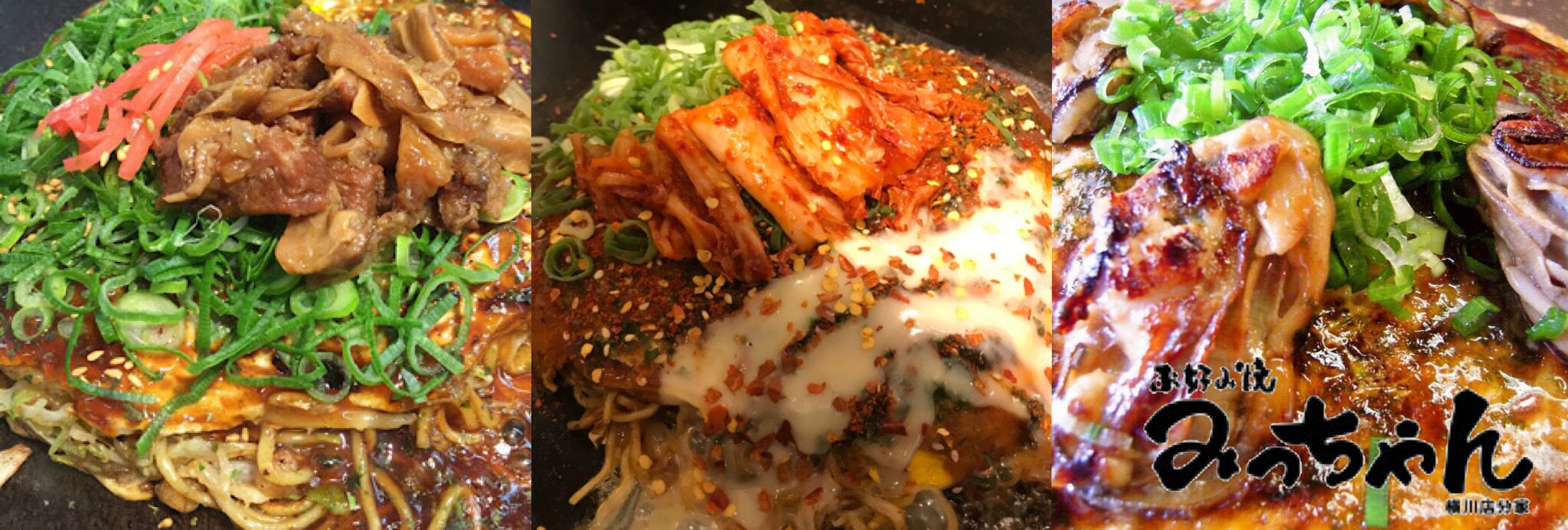 広島でお好み焼きを食べるなら、みっちゃん横川店分家へ是非どうぞ!!平和祈念公園、広島文化センターから徒歩5分、広島駅から車で10分です。戦後の昭和25年、町の復興とともにお好み焼き「みっちゃん」は変化してきました。もともとはクレープ状の生地にネギとわずかな野菜をのせて焼き、半月状に折りたたみ、ウスターソースを塗って薄皮とよばれる木の皮にのせ、新聞紙に包んで持ち帰るおやつ感覚のものでした。広島の復興とともに変化してきた広島焼きのみっちゃんの総本家からのれん分けを受け店舗をかまえております。