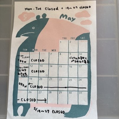 5月は変則的な営業日&時間の日がありご迷惑おかけ致しますがよろしくお願いします。
