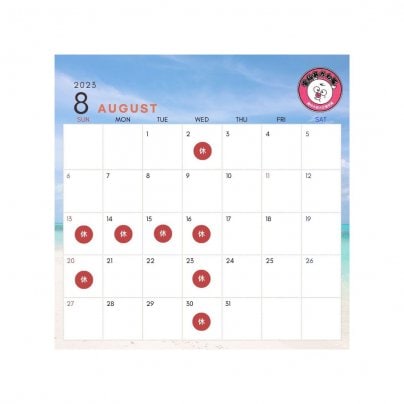 8月の営業日カレンダーを更新いたしました。
