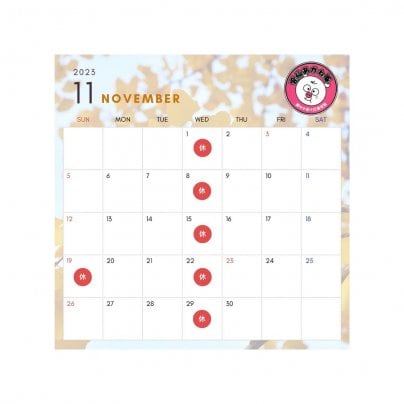 11月の営業日カレンダーを更新いたしました。今月は通常通りの営業となっております。