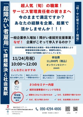 なぜ、今! 障害者雇用なのか、その理由とメリットをお話しさせれいただきます!
