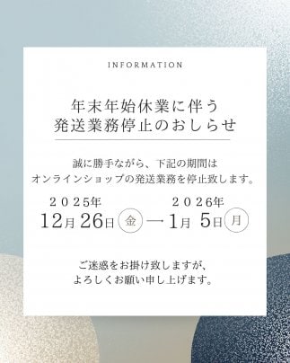 発送業務は年内2025/12/25PM14:00受注分までとし、発送業務開始は2026/1/6からとなり