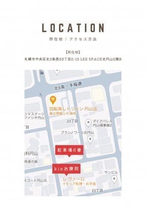 西28丁目駅、円山公園駅から歩いて来られる距離です。駐車場一台あり。お客様が重なってしまう際、近くのコインパーキングをご利用ください。