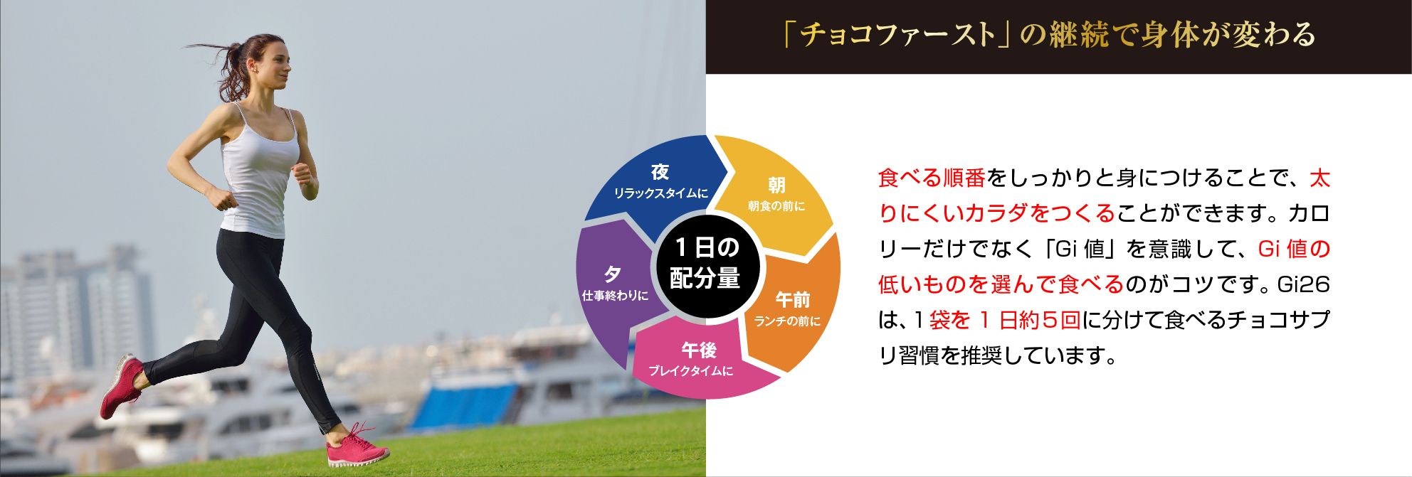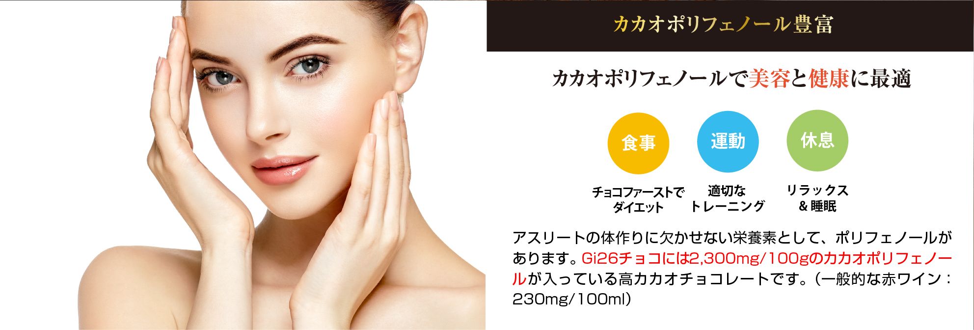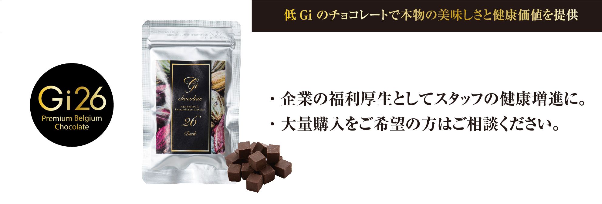 アスリートから広まった毎日美味しく続けられる「罪悪感ゼロ」の低Giプレミアムベルギーチョコレート。 美容や健康を気づかう人に愛用されている低GI・高カカオポリフェノールチョコレートサプリ《Gi26》血糖値コントロールにお勧めなのでダイエットやボディメイクでリバウンドを繰り返している方に使ってほしいチョコサプリ。