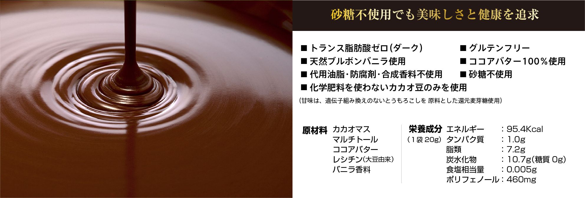 ■低GI■高カカオポリフェノール■グルテンフリー■トランス脂肪酸ゼロ■化学肥料不使用カカオ豆のみ使用■ココアバター100%■天然ブルボンバニラ使用■代用油脂・防腐剤・合成香料ゼロ■砂糖ゼロ