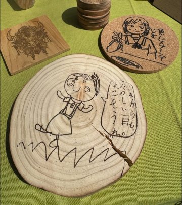 Soleでは、お子様の描いた絵をレーザーで輪切りの丸太にレーザー加工するサービスを始めました!