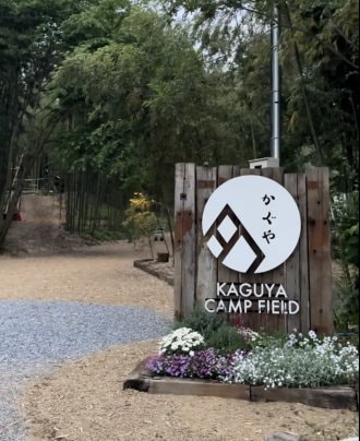 自社のアウトドア事業部であるキャンプ場「CAMPかぐや」の目印となる大きなアイアン製の看板を作成し取り付けました。(R5年4月)