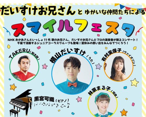 だいすけお兄さんとゆかいな仲間たちによるスマイルフェスタ開催🎶7/26開催