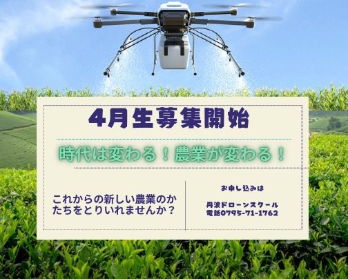 丹波ドローンスクールは国家免許取得 無人航空機ドローン教習所、国土交通省 登録講習団体として親子三世代で運営しております。無人航空機(ドローン)の発展とその機能を十二分に活躍した多くの産業利用は近年益々注目されています。丹波ドローンスクールは、無人航空機産業を益々発展させるために、産業貢献と運行上の安全な飛行と操縦士の技術的向上を目指しあなたのビジネスを一歩前へと推し進めるお手伝いをさせていただいております。