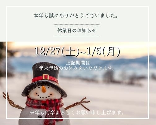年末年始休業のお知らせ