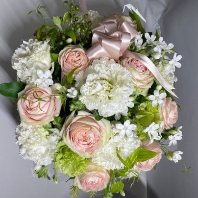 今年も母の日ギフトを、日頃の感謝の気持ちを込めて特別なムーンダストカーネーションと季節のお花を使ったアレンジメントをご用意しました。