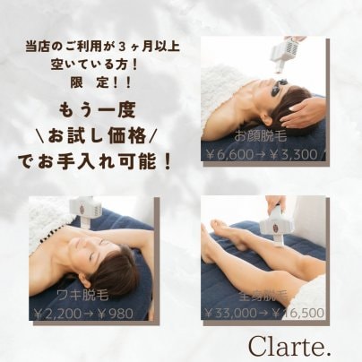 当店のご利用が3ヶ月以上空いている方!限定キャンペーン!!