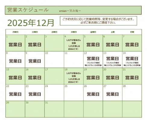 12月営業スケジュールのご案内